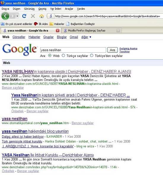 En son Somali açıklarında korsanlar tarafından kaçırılan YASA NESLİHAN isimli Marshall bayraklı dökme yük gemisinin kaçırılma haberini ilk kamuoyuna duyuran Deniz Haber Ajansı'nın resmi haber portalı www.denizhaber.net , yine bir ilki gerçekleştirerek, geminin sahibi YASA Denizcilik’ten önce gemide bulunan korsanlarla ilk diyaloga geçmeyi başardı.