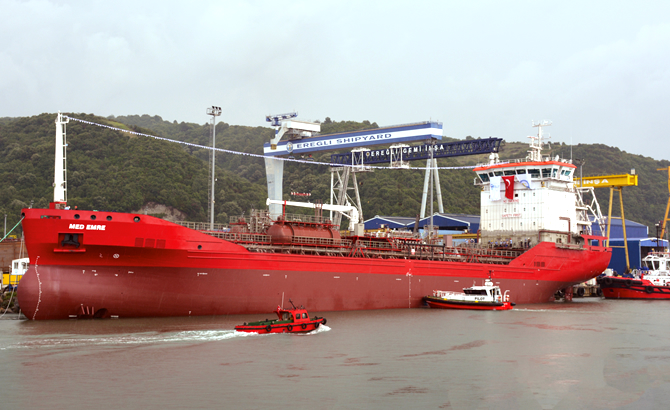 Med Marine’e ait Ereğli Gemi İnşa A.Ş.’de inşa edilen 8400 DWT kimyasal/ürün tankeri MED EMRE, başarı ile suya indirildi. MED EMRE’nin 2019 yılı içerisinde YMN Tanker’in işlettiği filoya katılması planlanıyor.