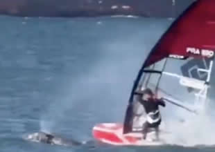Amerika Birleşik Devletleri'nin Kaliforniya eyaletine bağlı San Francisco Körfezi'nde eşine az rastlanır bir doğa olayı ve kaza kameraya yansıdı. Bölgede rüzgar sörfü yapan bir sporcu, kendi rotasında hızla ilerlerken su yüzeyine aniden çıkan devasa bir balinaya çarptı. Sörfçünün çarpmanın etkisiyle tahtasından fırlayarak suya çakıldığı o anlar, sahilde bulunan vatandaşların objektiflerine anbean kayıt altına alındı.