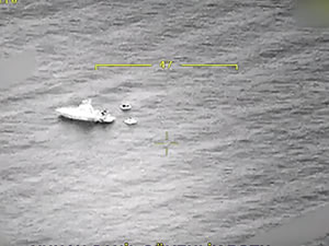 Deniz Kuvvetleri Komutanlığına ait insansız hava aracı (İHA), 4 Aralık'ta Ege Denizi'nde, Yunanistan'a ait sahil güvenlik botları tarafından düzensiz göçmenlerin Türk kara sularına itilmesini görüntüledi.